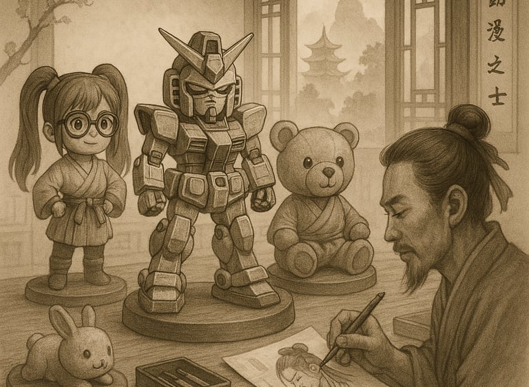 Anime and game collectibles, themed toys, puzzles, and board games catering to fans of all ages